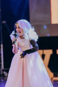 Dominique Simionescu, profesoara micilor artiști, nu are nevoie de prea multe prezentări, sibienilor fiindu-le cunoscut parcursul pe care „Fata cu florile pe cap”, așa cum este numită datorită cununii pe care o poartă pe scenă, l-a avut încă de pe vremea când a apărut în studiourile TVR la „Vedeta familiei” (2010), sau la Antena 1, în 2013, la „X Factor” sau „Te cunosc de undeva”, unde a cântat alături de Pepe.