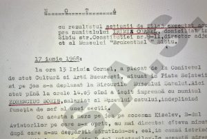 Având în vedere că în cadrul muzeului sunt cunoscute persoane cu antecedente politice, persoane cu atitudini și manifestări negative ori legături cu cetățeni străini, pentru organizarea muncii informativ-operative (…) propunem deschiderea dosarului de obiectiv Muzeul Burkenthal˝- scrie în inițiativa sa un locotenent colonel sibian.